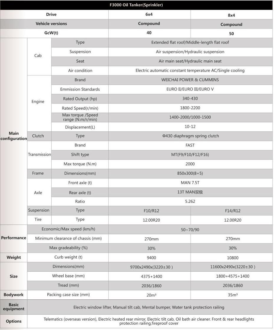از نظر جزئیات محصول ، موتور مخزن سوخت نفت Shacman F3000 6x4 و 8x4 از مدل های مختلفی برخوردار است و حداکثر اسب بخار تا 400 اسب بخار ، گشتاور بالا ، عملکرد شتاب خوب و می تواند با شرایط مختلف کار سازگار شود. انتقال بیشتر انتقال سریع دستی است ، که می تواند تغییر سرعت نامحدود را درک کند ، دامنه گشتاور چرخ رانندگی و تغییر سرعت را گسترش داده و سازگاری کامیون را بهبود ببخشد. تیغه های داخلی مخزن بارگذاری بالا با چرخش با دستگاه ریسندگی خط تقلید برای تقویت استحکام و آب بندی تشکیل می شوند. نمای بیرونی کامیون مخزن سوخت نفت Shacman F3000 6x4 و 8x4 برای از بین بردن استرس جوش و از بین بردن زنگ زدگی برای طولانی شدن عمر سرویس ، از آن استفاده می شود. کامیون تانکر Shacman F3000 همچنین مجهز به تجهیزات پیشرفته مانند دریچه های زیر دریایی ، بنادر مخزن استاندارد اروپا ، میله های پروب ضد جریان و سیستم های بازیابی نفت و گاز برای اطمینان از ایمنی و حفاظت از محیط زیست در هنگام حمل و نقل است.