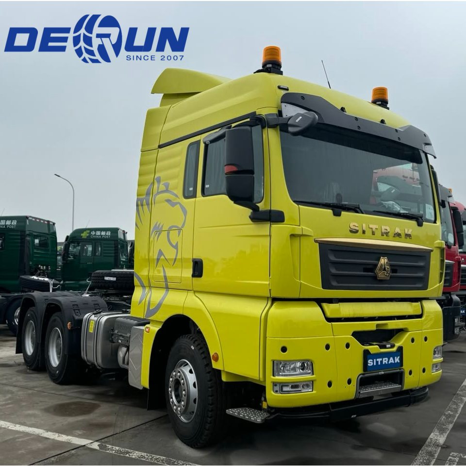 Sinotruk Sitrak 6x4 10 چرخ تراکتور کام کامیون Prime Mover یک کامیون سنگین و سنگین است که توسط گروه ملی کامیون های سنگین چین (CNHTC) راه اندازی شده است ، که تعدادی از فناوری های پیشرفته را ترکیب می کند و برای حمل و نقل لجستیکی از راه دور و با سرعت بالا طراحی شده است. ظاهر آن طراحی ساده ای را اتخاذ می کند ، که به طور موثری مقاومت باد را کاهش می دهد و باعث افزایش مصرف سوخت می شود. کابین جادار و راحت است ، با فضای داخلی مجلل و تعدادی از طرح های کاربر پسند برای فراهم کردن یک محیط رانندگی راحت برای راننده و مسافران.