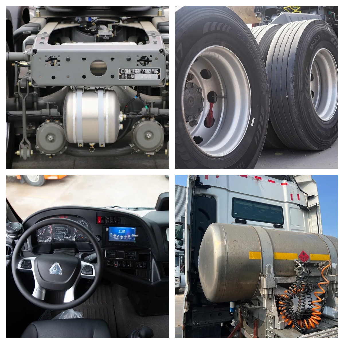 Sinotruk Sitrak 6x4 10 چرخ تراکتور سر تراکتور کامیون اصلی توسط موتورهای سری MC (CNHTC) MC (MC13.48-50 (480 اسب بخار) یا MC13H.57-61 (570 اسب بخار) از طریق MC13.48-50 (480 اسب بخار) استفاده می شود که به اندازه کافی قدرتمند هستند تا بتوانند از ایستگاه های انتشار یورو 5 یا یورو 6 استفاده کنند. تطبیق با انتقال ZF یا انتقال سری HW از کامیون National Heavy Duty China (CNHTC) ، دارای راندمان انتقال بالا و تغییر دنده صاف است. کابین مجهز به سیستم تعلیق کیسه هوا چهار نقطه ای است که به طور موثری لرزش و سر و صدا را کاهش می دهد و راحتی رانندگی را بهبود می بخشد. طراحی سبک وزن کل وسیله نقلیه ، استحکام و دوام بالایی را تضمین می کند و آن را برای لجستیکی با سرعت بالا و حمل و نقل زغال سنگ مناسب می کند.